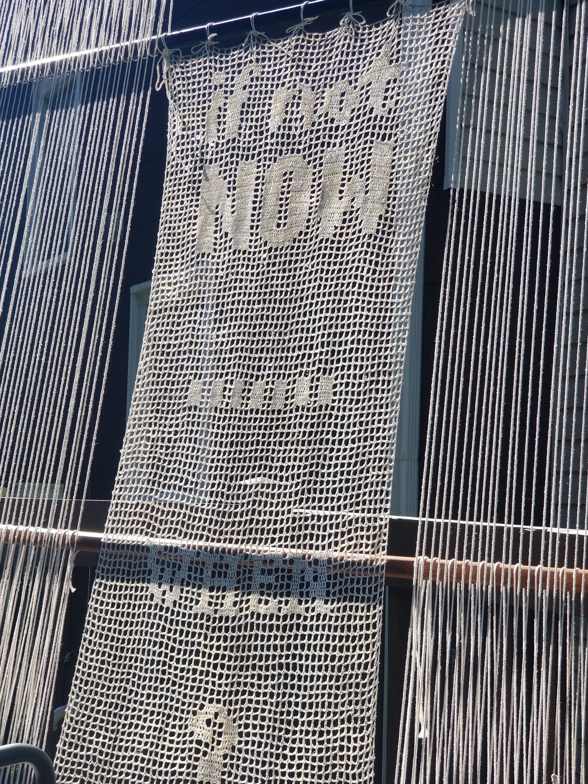 ○ Started the morning by tying the crocheted “WHEN?” to the loom. I like where this is going! I originally created this in response to the Parkland School Shooting. It has had a few transformations since then. But, this will be it’s NOW!