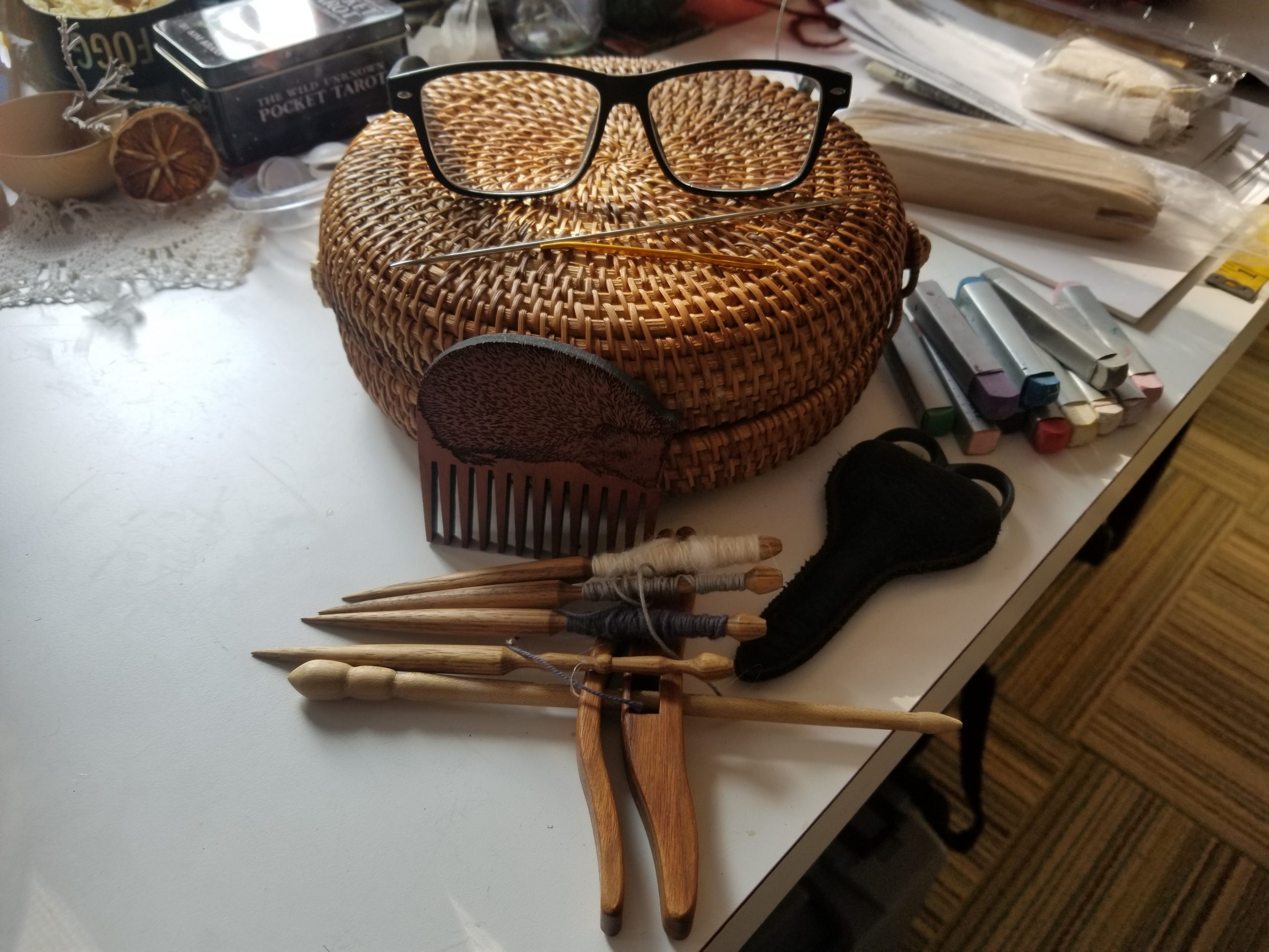 ○ Drew the “Secrets” card from the Creativity Oracle (textile artwork on the cards by Amy Zerner) and the High Priestess (Yarn Tarot). Both warning me to be cautious about sharing information until plans are further developed