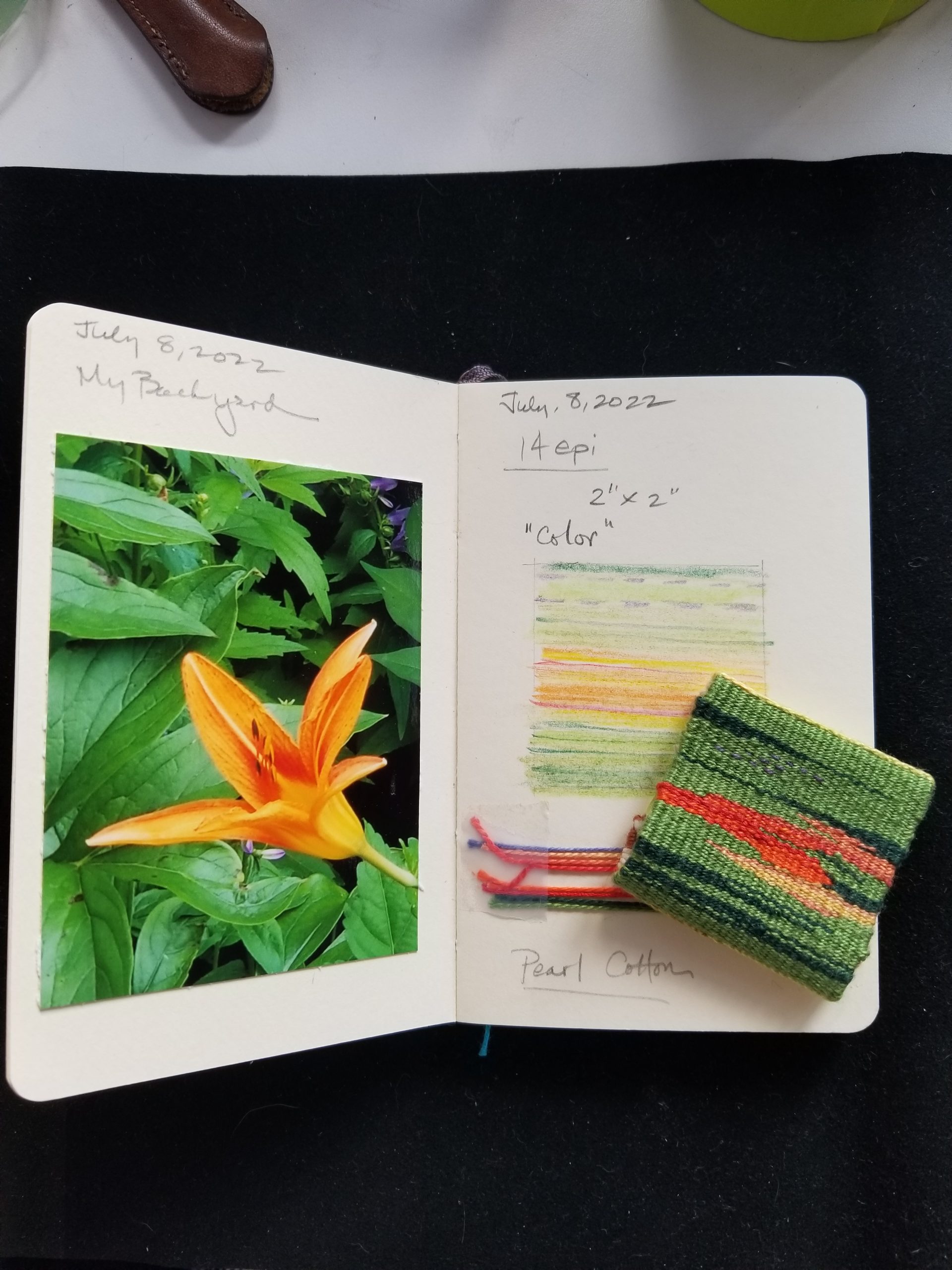 - Week 1 of a Summer of Tapestry. Prompt: Color. Inspiration: Daylilly in my yard.