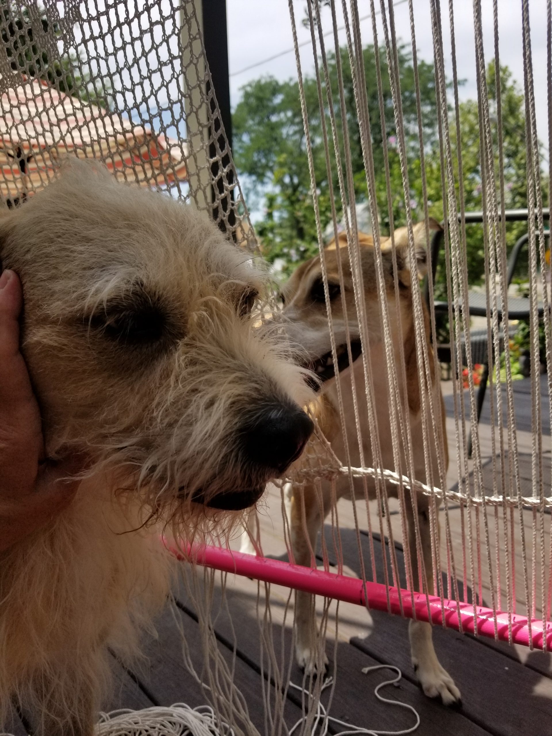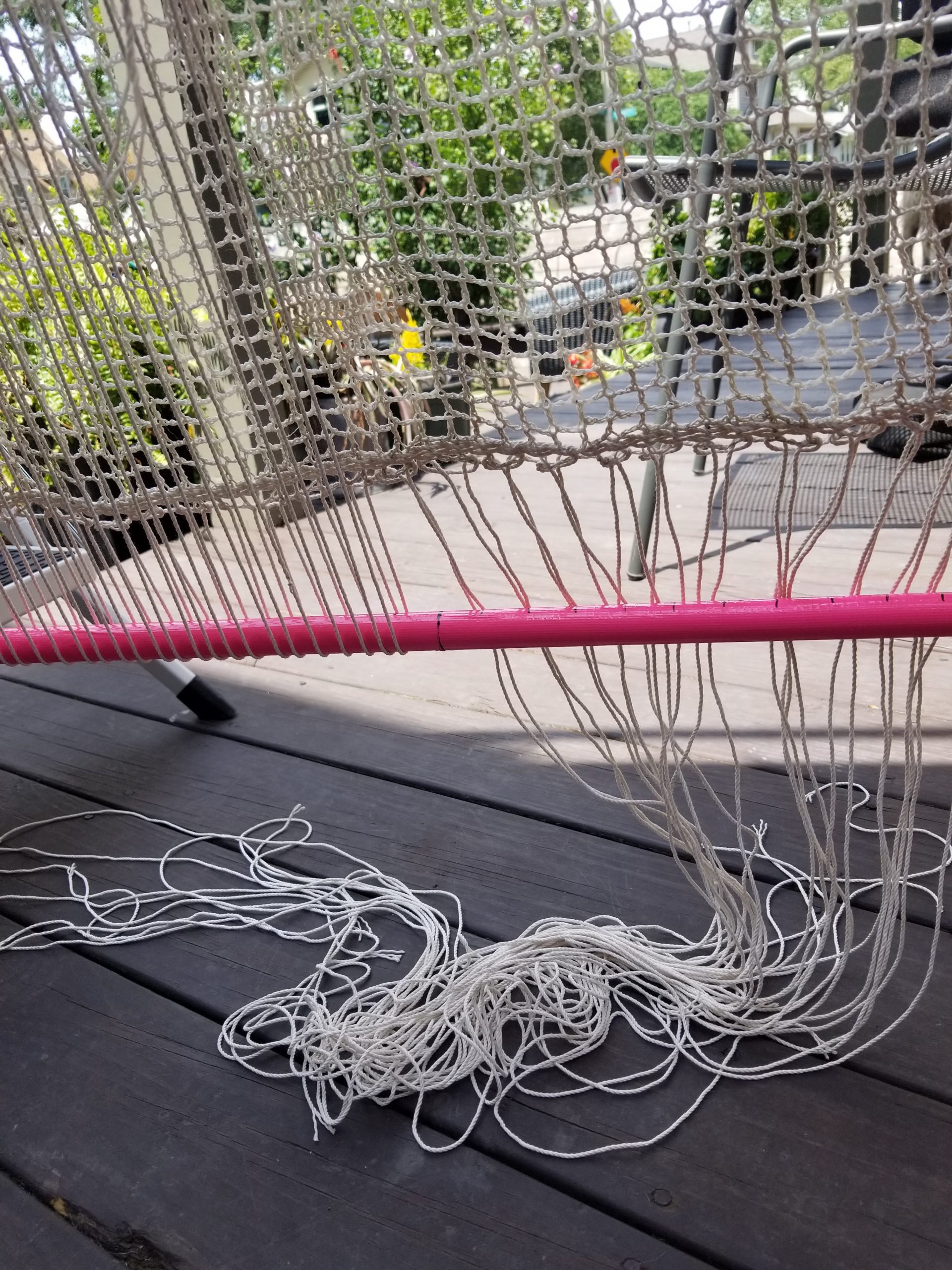 ○ Day 15: Fiona and Stormy inspected and approved some additional warping done today. It was hot and humid again, which limited my outdoor work to just an hour today. I’m very close to starting the actual weaving!